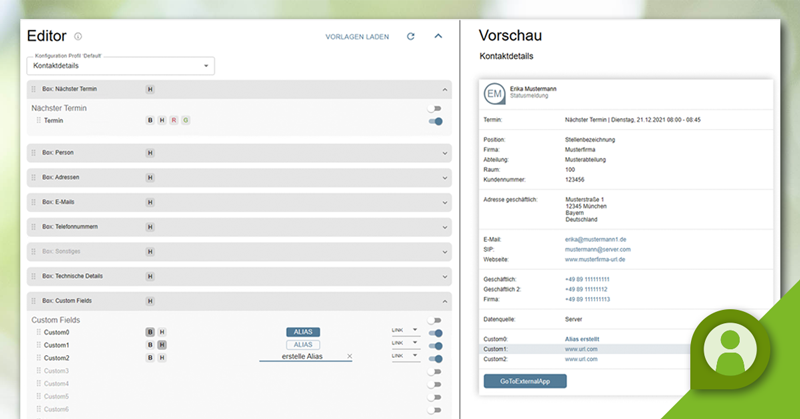 • WYSIWYG: As usual, our improved design includes "What You See Is What You Get" (WYSIWYG) functionality, which ensures you an accurate preview of your input. This increases usability and efficiency when working with the contact data editor.