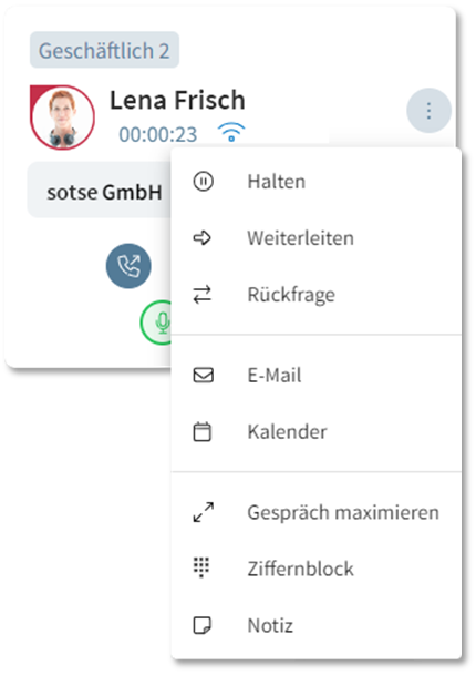 • Quality display: The quality of voice and image transmission is now displayed directly in the call window.