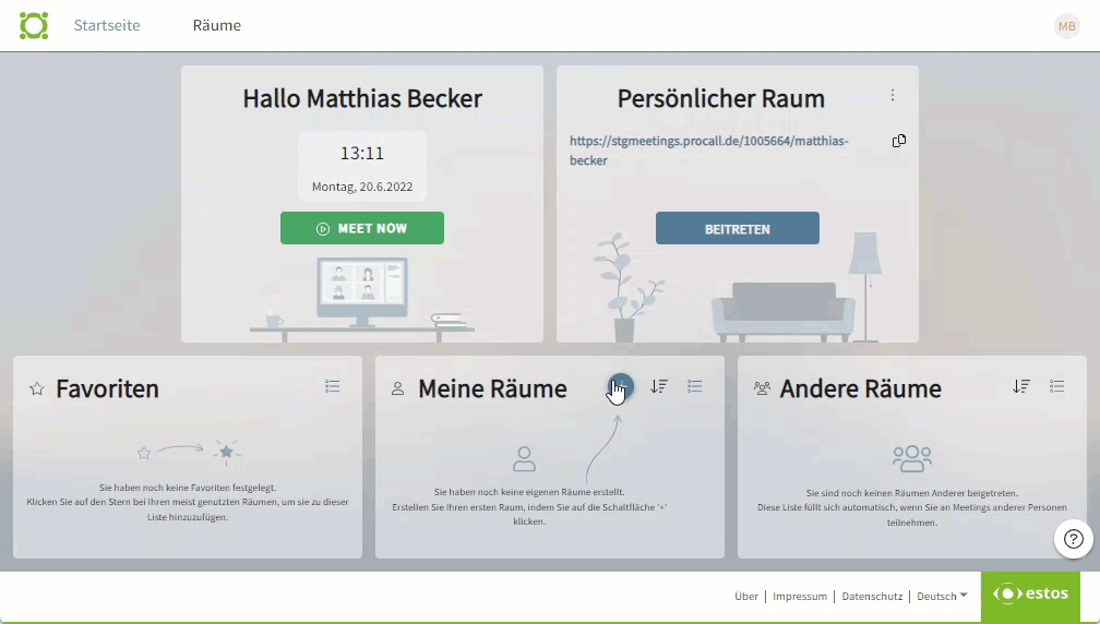 - In the dashboard, it is not possible to set the personal meeting room to grant moderation rights to employees of one's own company when they join.