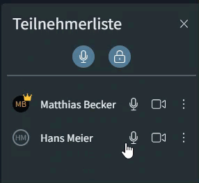 - Moderation rights are recognizable in the participant list (icon with a crown or tooltip).