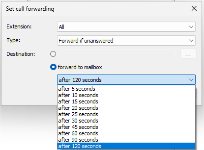 - The option "All" extensions is now available for "Call forwarding by time".